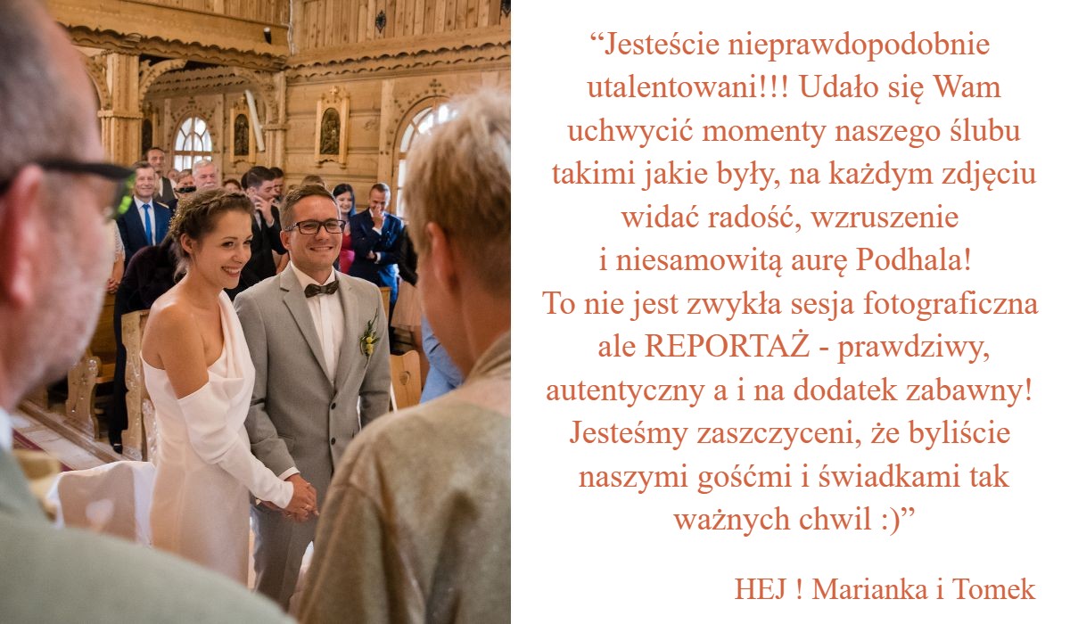 Pracujemy we dwoje, co pozwala patrzeć na Wasz dzień z dwóch różnych perspektyw. Dzięki podziałowi ról możemy działać spokojniej i bardziej incognito, bez biegania, bez pośpiechu, niezauważenie wśród gości. To sprawia, że reportaż jest pełniejszy, uważniejszy i bogatszy w detale.
